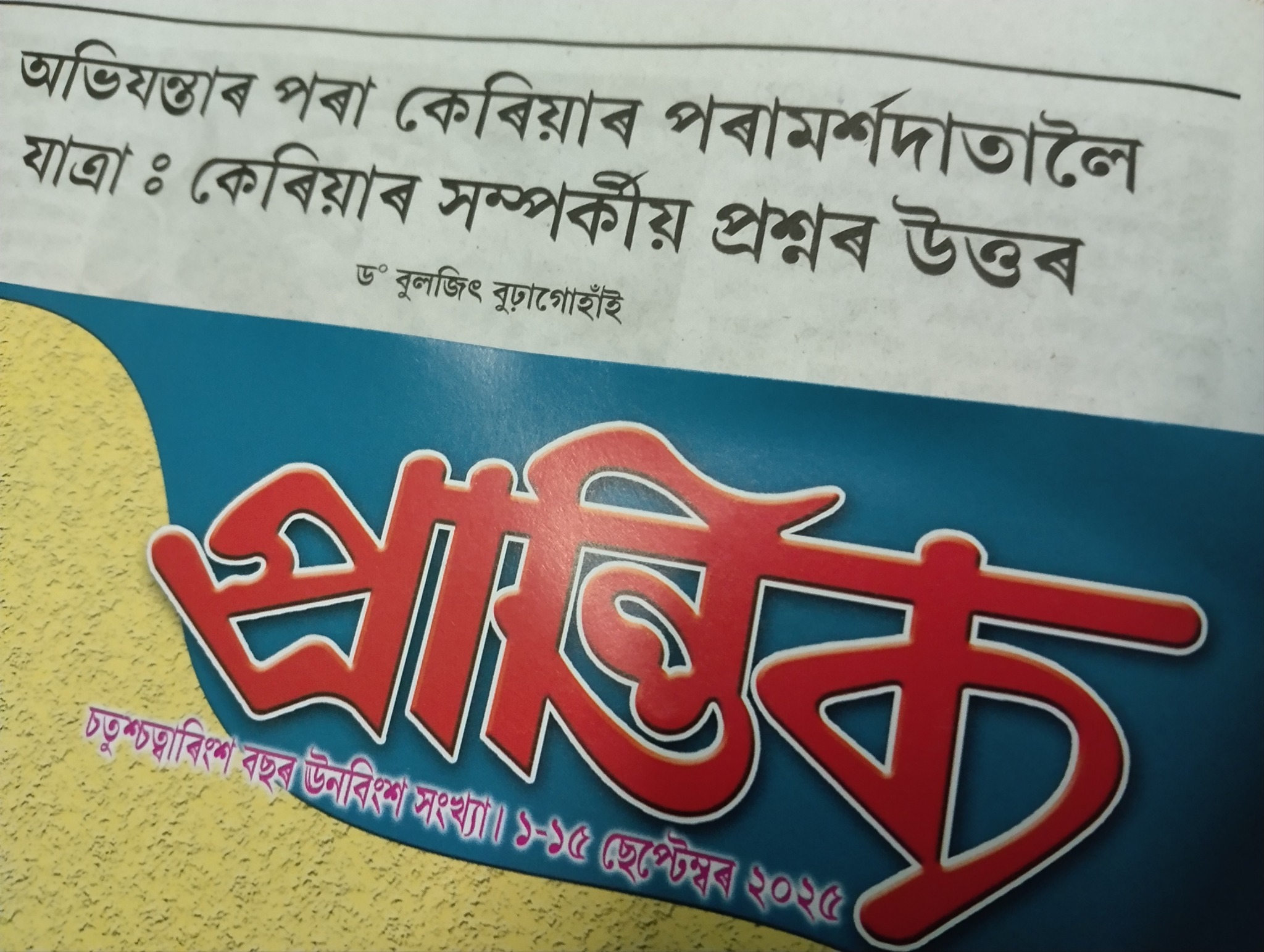 গুৱাহাটী, ৫ ছেপ্টেম্বৰ: ‘প্ৰান্তিক’আলোচনীৰ ১–১৫ ছেপ্টেম্বৰ, ২০২৫ সংখ্যাত প্ৰকাশ হোৱা ড° বুলজিৎ বুঢ়াগোহাঁইৰ ‘অভিযন্তাৰ পৰা কেৰিয়াৰ পৰামৰ্শদাতালৈ যাত্ৰা: কেৰিয়াৰ সম্পৰ্কীয় প্ৰশ্নৰ উত্তৰ’ শীৰ্ষক লেখাটোৰ ওপৰত ভিত্তি কৰি অনুষ্ঠিত অনলাইন মতামত প্ৰতিযোগিতাখনৰ ফলাফল ঘোষণা কৰা হৈছে। এই প্ৰতিযোগিতাখনত পুৰস্কাৰ লাভ কৰা প্ৰতিযোগীসকল হ’ল – কৃষ্ণালীনা কলিতা ,নৱনীতা গগৈ, পুষ্পাঞ্জলি ডেকা, বৰিস্মিতা ফুকন, ভবেন গগৈ, জয়শ্ৰী শইকীয়া, বিপুল শৰ্মা, শতাব্দী শৰ্মা, দাদুল ভূঞা আৰু শেৱালী ভণিতা চৌধুৰী । পুৰস্কাৰ লাভকাৰী সকলে তেওঁলোকৰ জি-পে নম্বৰ (G-Pay Number) বা বেংক একাউণ্ট নম্বৰৰ সবিশেষ ৱাটছএপ নম্বৰ ৯৪৩৫১৮৮৬৩০-ত জনাবলৈ ড° বুলজিৎ বুঢ়াগোহাঁয়ে আহ্বান জনাইছে।
