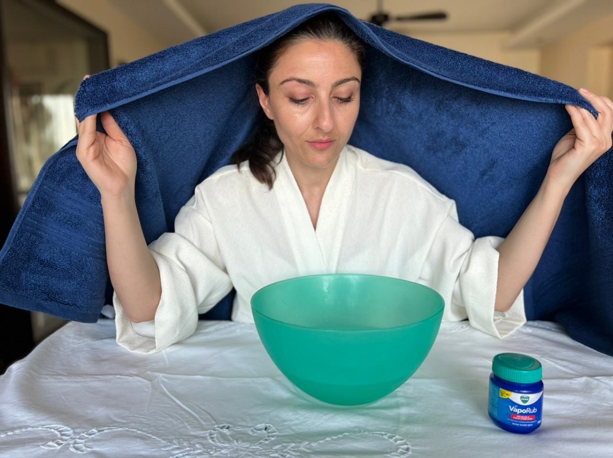 বলীউডৰ এগৰাকী জনপ্ৰিয় চেলিব্ৰেটি ছোহা আলী খানে কয় যে কেনেদৰে তেওঁৰ পৰিয়ালে সঠিক খাদ্য খাই, গভীৰ উশাহ-নিশাহৰ ব্যায়াম, যোগ, আৰু কাহ আৰু চৰ্দিৰ লক্ষণৰ পৰা সকাহ পাবলৈ ভিক্স ভাপোৰুবৰ সৈতে নিয়মীয়া বাষ্প উশাহত লৈ তেওঁলোকৰ শ্বাস-প্ৰশ্বাসৰ স্বাস্থ্যৰ প্ৰতি অতিৰিক্ত মনোযোগ দিয়ে।