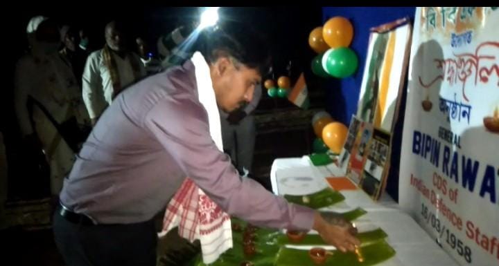 বিশ্বনাথৰ নিলপুৰ চাহ বাগিছাত বিবিএফচি উদ্যোগত ভাৰতীয় সেনাৰ সৰ্বাধিনায়ক বিপিন ৰাৱাতক শ্ৰদ্ধাঞ্জলি জ্ঞাপন
