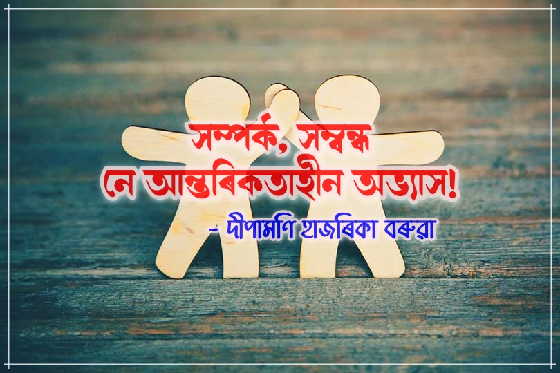 এই কথাটোও সত্য যে সম্পৰ্কবিলাকে সদায় স্বাধীন হৈ থাকি ভাল পায়। হাতৰ মুঠিত ৰাখিবলৈ যত্ন কৰিলে ই উশাহ নাপাই ককবকাবলৈ ধৰে ।এই পৃথিৱীত কোনো মানুহেই সম্পূৰ্ণ ৰূপে শুদ্ধ নহয়।কাৰোবাক যদি ভাল লাগিছে, তেওঁৰ ভাল আৰু বেয়া দুয়োটা গুণ, দোষকে মানি লৈ বেয়াখিনিক সংশোধন কৰিবলৈ চেষ্টা কৰাতহে সম্পৰ্কৰ সাৰ্থকতা। কিন্তু বৰ্তমান সময়ত সম্পৰ্ক এটা যিমান সোনকালে গঢ় লয় ভাগেও সিমান সোনকালেই। প্ৰায়বিলাক সম্পৰ্কতে দেখা যায় অকনমান বেয়া পালেই নতুবা ভুল বুজিলেই হাজাৰ সহায় কিম্বা মৰম কৰাৰ পাছতো আপোন জনৰ কথা আনক অকনমানো নভৱাকৈ বেয়াকৈ কৈ দিব পাৰে।দুই একে আপোনজনৰ কুৎসা-ৰটনাৰে তেওঁৰ সন্মান আনকি জীৱন পৰ্যন্ত ধ্বংস কৰি দিবলৈও কুন্ঠাবোধ নকৰে। এসময়ত যি তি ক’ব পৰা,আলোচনা কৰিব পৰা সম্পৰ্কবোৰত যেতিয়াই জুখি জুখি,আনক কৈ দিব নেকি বা বেয়া পাব নেকি বুলি ভাবি চিন্তি কথা কব লগীয়া হয় ঠিক তেতিয়াই আচলতে সম্পৰ্কটো শেষ হয়। ইয়াৰ পাছত যন্ত্ৰণা আৰু কৃত্ৰিমতাৰ বাদে একো নাথাকে।মাত্ৰ অলপদিন একেলগে থকাৰ পাছতে সৰু সৰু কথাতে বেয়া পোৱা, ফাঁকি দিয়া,মিছা কথা কোৱাটো যেন বৰ্তমান সময়ত সম্পৰ্কৰ বৈশিষ্ট হৈ পৰিছে।যাৰ বাবে ভাবিবলৈ মন যায়,আপোন বুলি ভবা সৰহখিনি মানুহেই হয়তো স্বাৰ্থৰ খাতিৰতহে আমাক আপোন কৰি থয়। মধুময় এখিনি সময় একেলগে পাৰ কৰাৰ পাছতো যেতিয়াই আমাৰ কথা বা কামে তেওঁলোকৰ স্বাৰ্থত অলপ হলেও ব্যাঘাত জন্মায় তেতিয়াই তেওঁলোকে নিজৰ আচল ৰূপটো প্ৰদৰ্শন কৰি দিয়ে।আমাক ফাঁকি দিয়ে, সৰু কথাতে খং কৰে ,আনৰ আগত আমাৰ বদনাম গায় নতুবা দুখ লগাকৈ আমাক অৱহেলা কৰে।