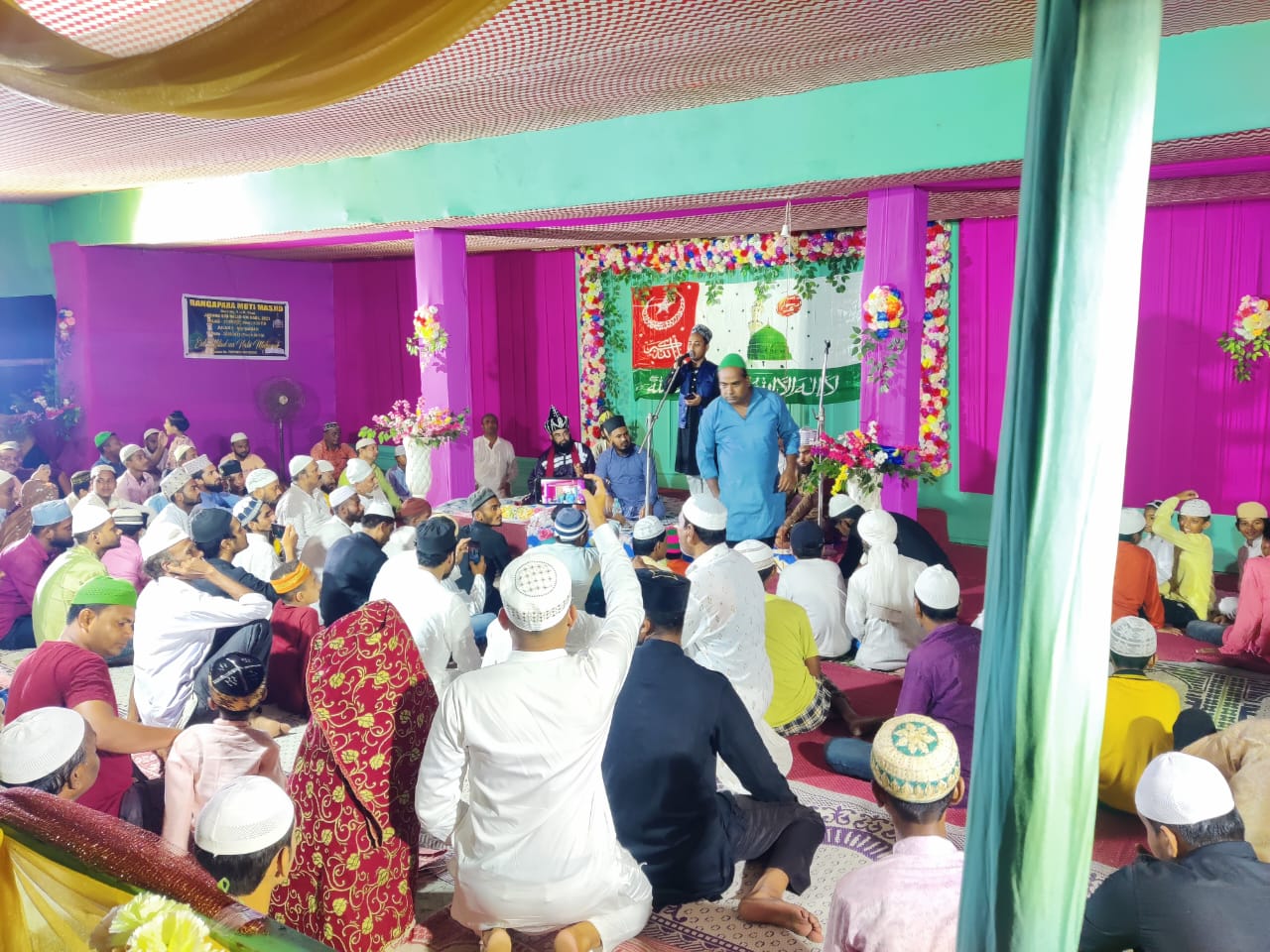 বুধবাৰে নিশা ৮বজাৰ পৰা অনুষ্ঠিত কাৰ্যসূচীৰ আৰম্ভণিৰ পূৰ্বে বিভিন্ন মোক্তাবৰ ইমাম সকলক উদযাপন সমিতিৰহৈ একোখনকৈ ফুলাম গামোছাৰে সম্বৰ্ধনা জ্ঞাপন কৰা হয়৷ মতি মছজিদ কমিটিৰ ঈদ-এ-মিলাদুন্নবী উদযাপন সমিতিৰ হৈ উদযাপন কৰা কাৰ্যসূচীত নিশাৰ ভাগত মতি মছজিদৰ ইমাম মৈলানা মুখতাৰ হুচেনৰ সামূহিক মাঙ্গলিক দোৱাৰে কাৰ্যসূচী আৰম্ভ হয়৷