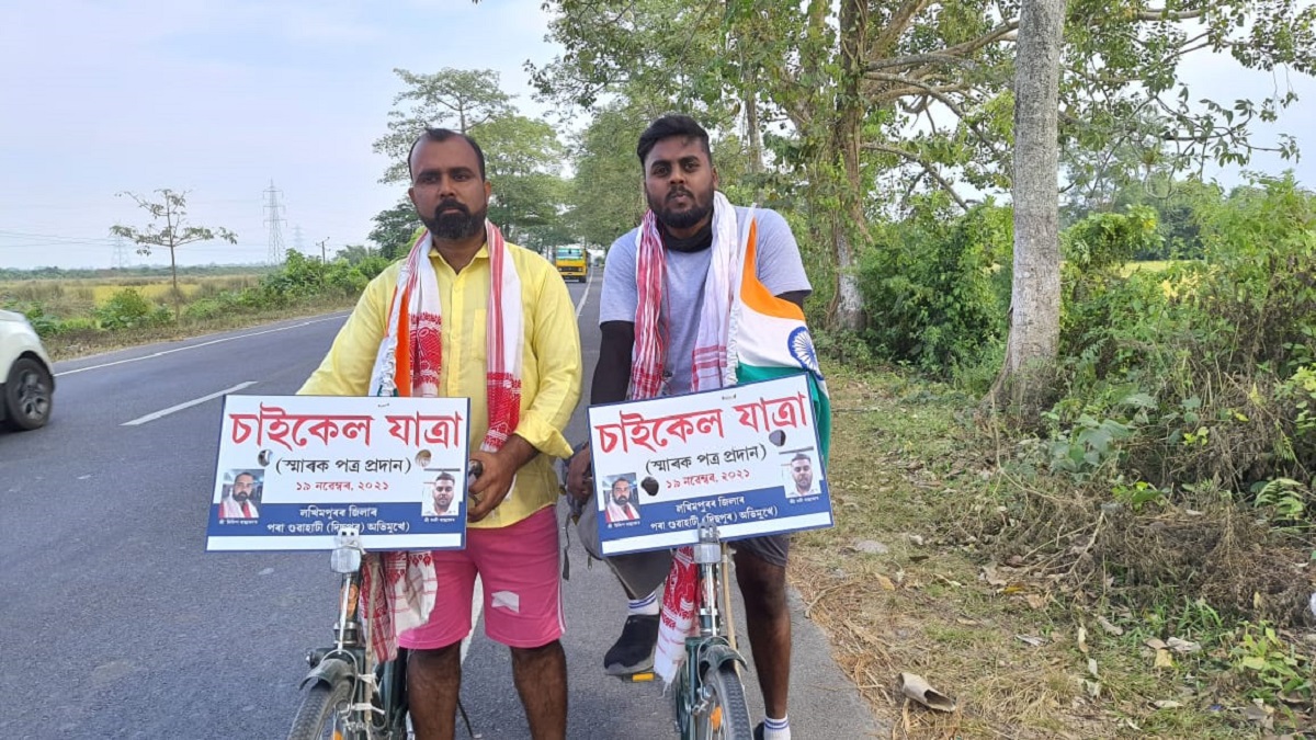 লখিমপুৰৰ পৰা দুজন হৰিজন সমাজৰ যুৱকে ১৯ নৱেম্বৰ পুৱা পৰা আৰম্ভ কৰিছে এক চাইকেল যাত্ৰা