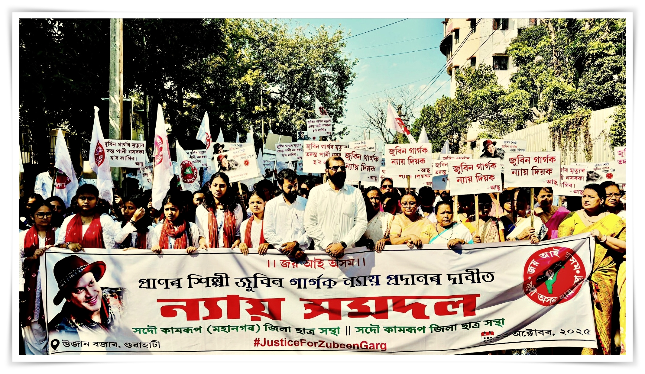 জনতাৰ শিল্পী জুবিন গাৰ্গক ন্যায় প্ৰদানৰ দাবীৰে সদৌ অসম ছাত্ৰ সন্থাই আজি ৰাজ্যজুৰি ন্যায় সমদল উলিয়ায়। সদৌ কামৰূপ মহানগৰ জিলা ছাত্ৰসন্থা আৰু কামৰূপ জিলা ছাত্ৰসন্থাৰ উদ্যোগত গুৱাহাটীৰ উজান বজাৰৰ ছহিদ ন্যাস ভৱনৰ পৰাও পুৱা ন্যায় সমদল উলিওৱা হয়।