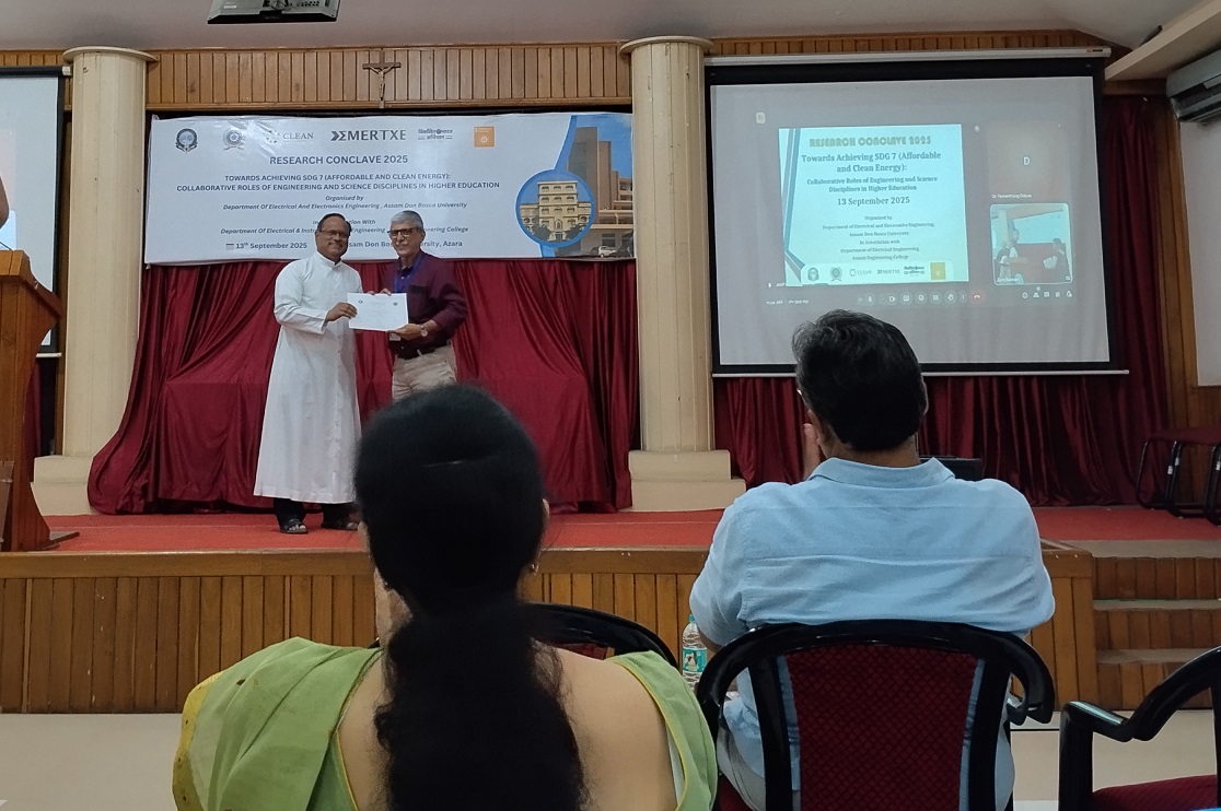 Guwahati ,13th September: The Research Conclave on “Towards Achieving SDG 7 (Affordable and Clean Energy)”, jointly organized by the Department of Electrical & Electronics Engineering of Assam Don Bosco University (ADBU) and the Department of Electrical Engineering of Assam Engineering College (AEC), successfully concluded 13th September 2025, with robust industry, academic and NGO participation, and had decisive outcomes and actionable commitments. The one-day event showcased 30 technical presentations and catalysed cross-sector roadmaps for decentralized renewable energy pilots and academia–industry collaborations.