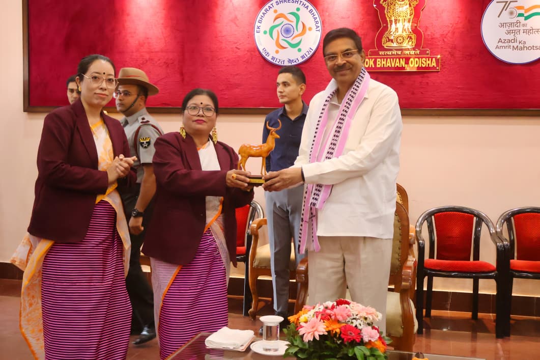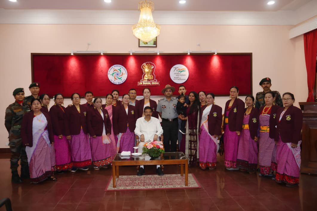 Assam Rifles National Integration Tour under the Civic Action Programme for members of Jiri Ima Meira Paibi Apunba Lup (JIMPAL) from Jiribam, Manipur reached Bhubaneswar and interacted with the Honourable Governor of Odissa over a high tea. The OIC Tour presented the iconic Assam Rifles ‘Dhai Moorti’ Memento to the Governor.