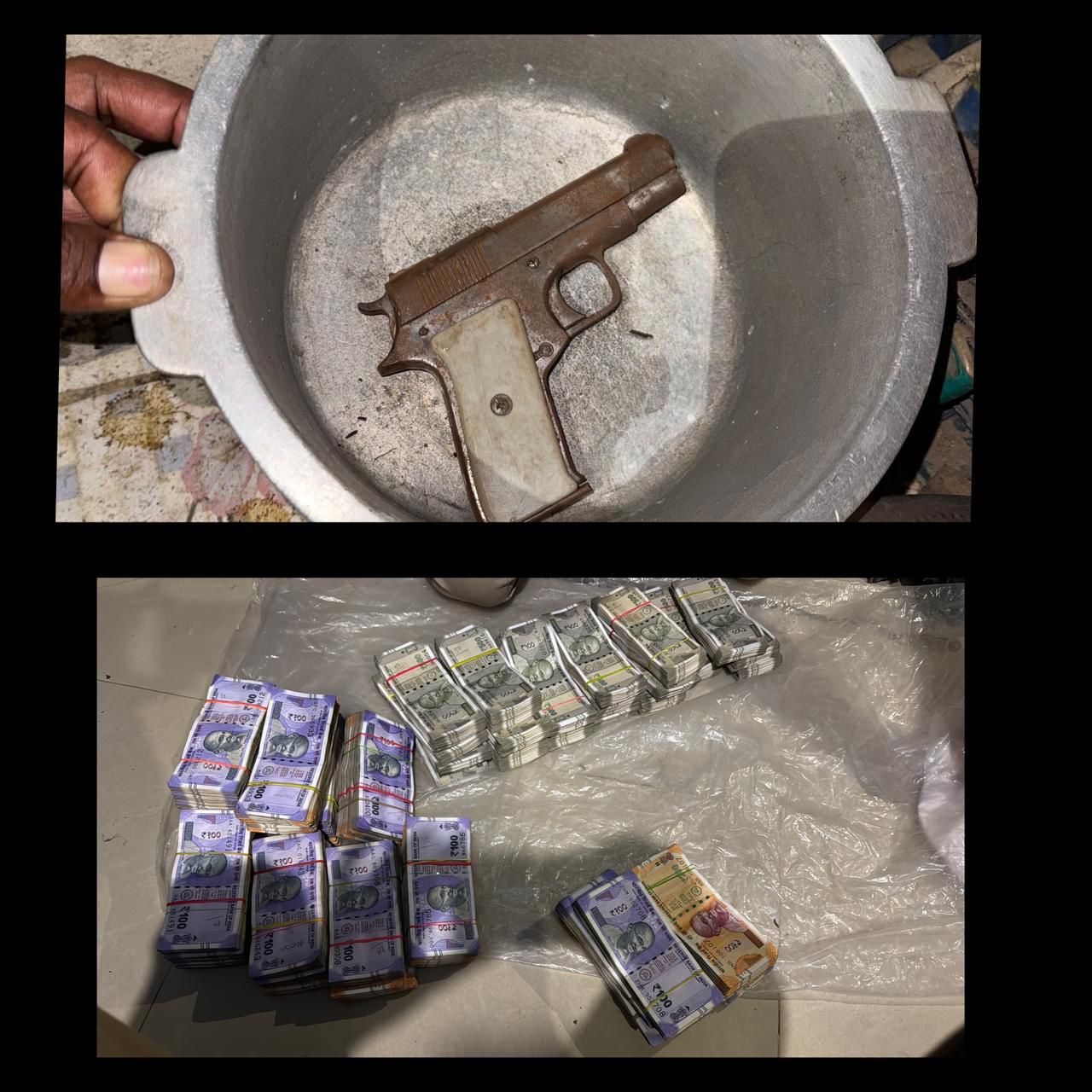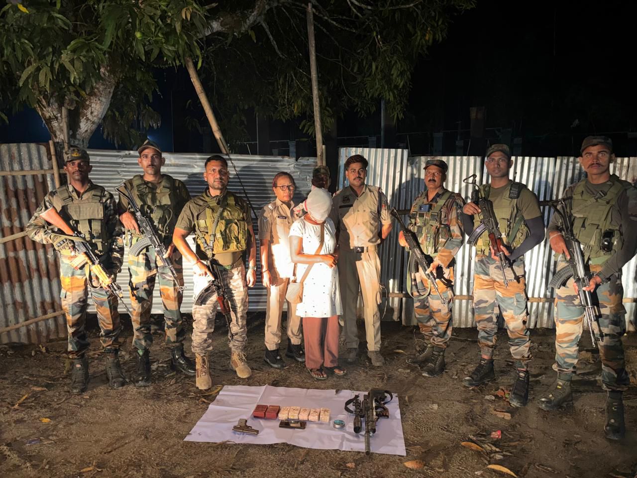 Seizures include one .32 pistol, one airgun with telescopic sight and one mobile handset. Narcotic contraband to include Yaba tablets worth ₹3.12 crore, 23grams of heroin, and cash amounting to ₹14.9 lakh. One individual detained; further investigation in progress.