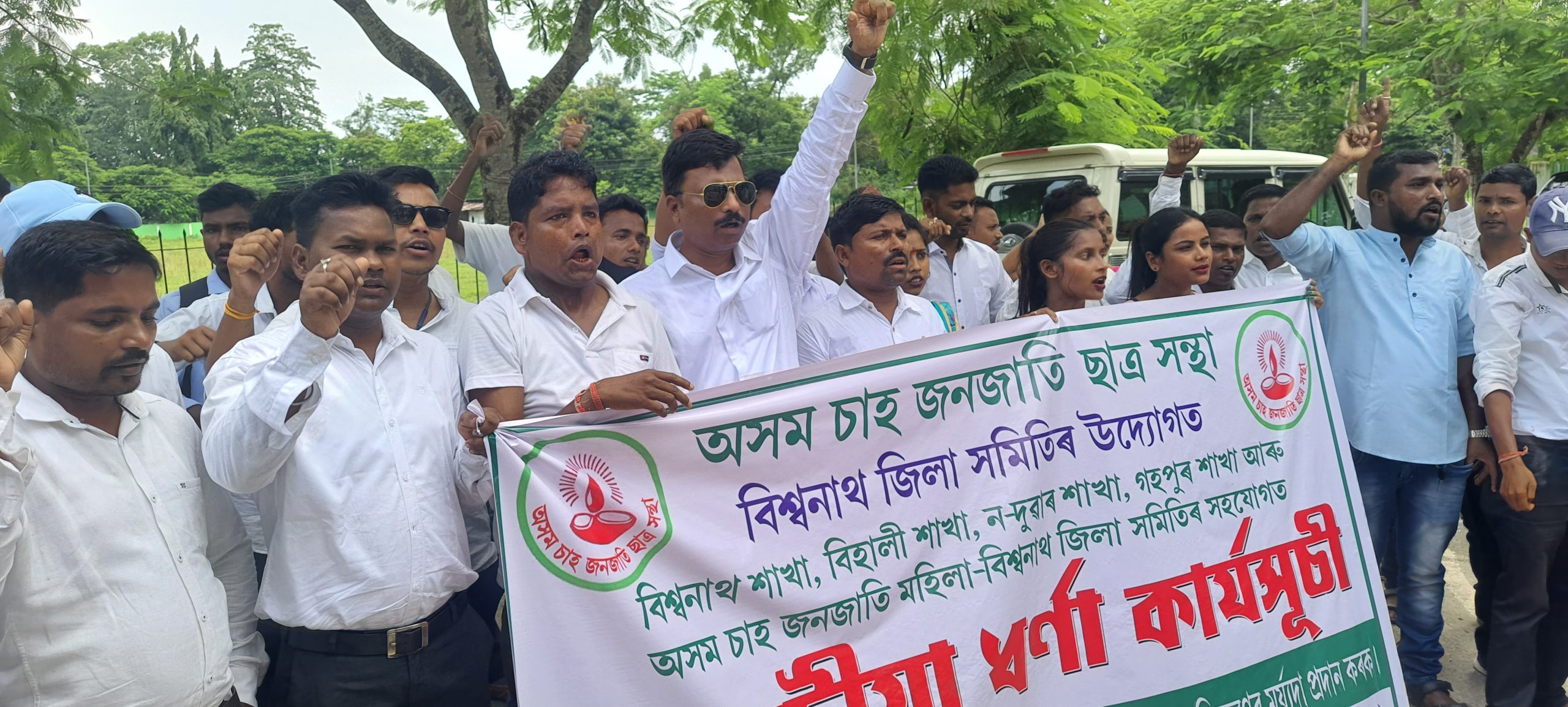 অসমৰ চাহ জনগোষ্ঠী আদিবাসী সকলক শীঘ্ৰে জনজাতিকৰণ কৰাকে ধৰি ভূমি পট্টা প্ৰদান কৰা, চাহ শ্ৰমিকসকলক দৈনিক ৩৩০ টকাকৈ মজুৰি প্ৰদান কৰা দাবীত ৰাজ্যত উত্তাল প্ৰতিবাদ সাব্যস্ত অব্যাহত ৰাখিছে আদিবাসী ছাত্ৰ সন্থাকে ধৰি চাহ জনগোষ্ঠীৰটো বিভিন্ন দল সংগঠনে।
