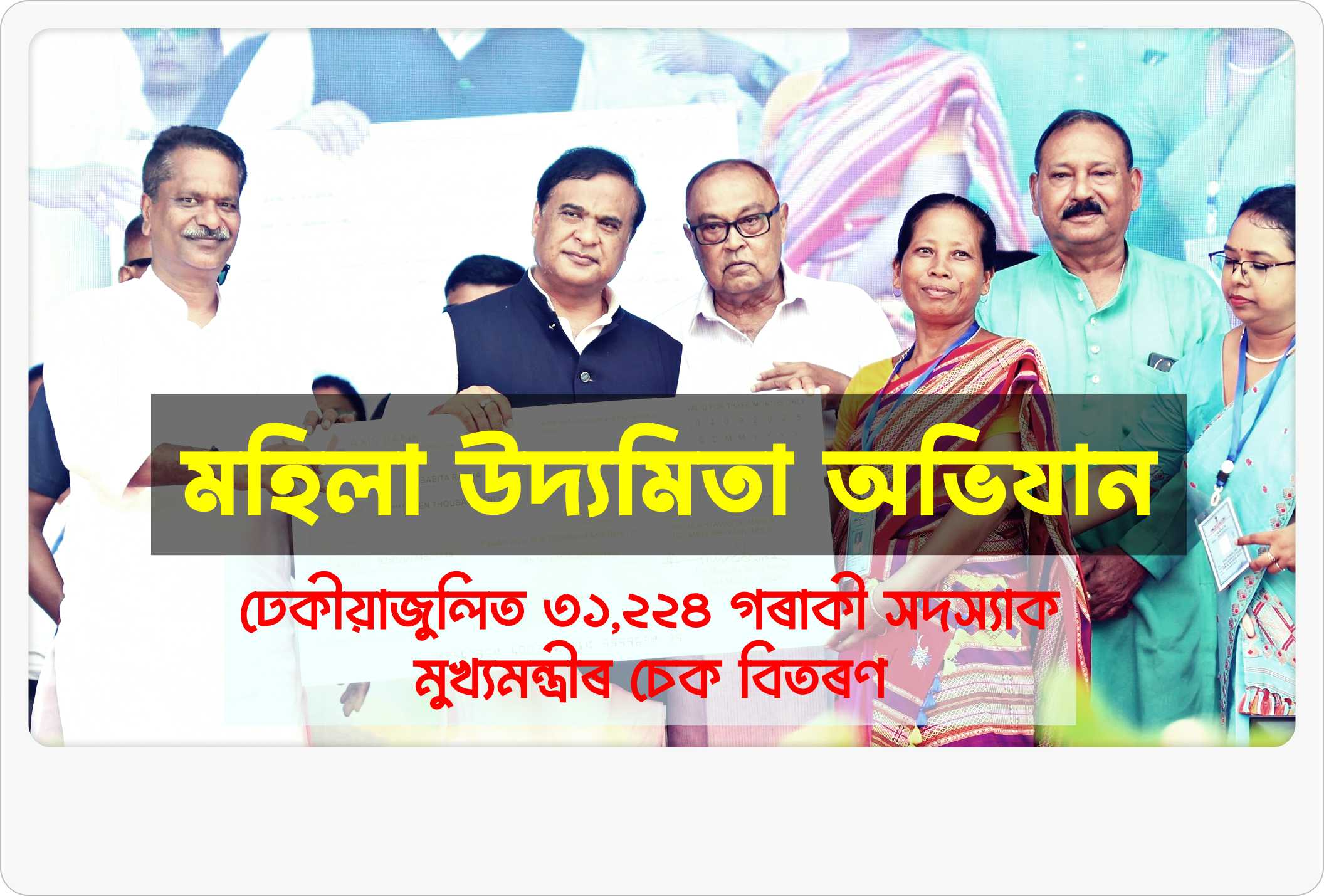 মহিলা উদ্যমিতা অভিযানঃ ঢেকীয়াজুলিত ৩১,২২৪ গৰাকী সদস্যাক মুখ্যমন্ত্ৰীৰ চেক বিতৰণ