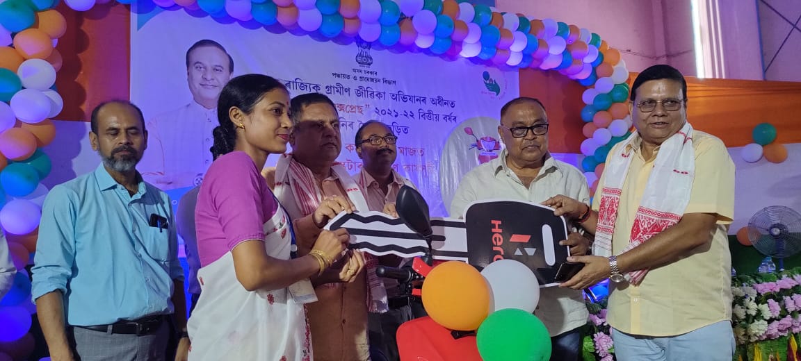বিশ্বনাথ চাৰিআলি ৩০ আগষ্ট:- অসম চৰকাৰৰ পঞ্চায়ত ও গ্ৰামোন্নয়ন বিভাগৰ অসম ৰাজ্যিক গ্ৰামীণ জীৱিকা অভিযানৰ অধীনত ৰূপায়িত সখী এক্সপ্ৰেছ ২০২১-২০২২ বিত্তীয় বৰ্ষৰ আচনিৰ সৈতে জড়িত সামুহিক কৰ্মী সকলৰ মাজত জিলা খনৰ ৭ টাকৈ উন্নয়ন খণ্ডৰ অন্তৰ্গত ১৯৭ গৰাকী সখীক আজি স্কুটি বিতৰণ কৰা হয় । বিশ্বনাথ চাৰিআলিৰ হিমালয় ভৱনত অনুষ্ঠিত হোৱা এক বৰ্ণাঢ্য কাৰ্যসূচীৰ মাজেৰে আয়োজিত এই অনুষ্ঠানত উপস্থিত থাকে বিশ্বনাথ জিলাৰ উপায়ুক্ত মুনীন্দ্ৰ নাথ ঙাটে, বিশ্বনাথ বিধান সভা সমষ্টিৰ বিধায়ক প্ৰমোদ বৰঠাকুৰ, বিহালী সমষ্টিৰ বিধায়ক ৰঞ্জিত দত্ত, গহপুৰ সমষ্টিৰ বিধায়ক উৎপল বৰা সহ বহু কেইজন বিষয়া ।