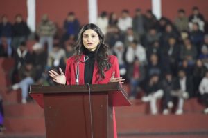 Adding glamour and entertainment to the evening, Mrs Supriya Pathak enthralled the crowd with her captivating performance of popular Bollywood numbers, setting a joyous and festive mood in the stadium. Her performance was complemented by an energetic dance by the Tani Daughters, who gracefully performed to her songs, winning the hearts of the audience.