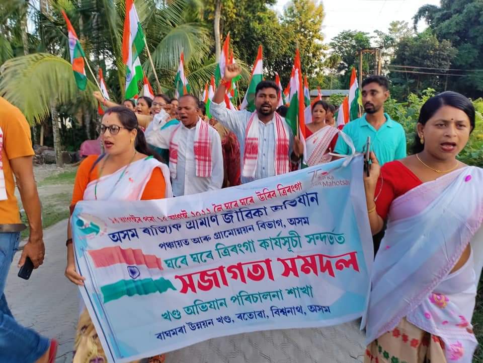বিহালী সমষ্টিৰ বাঘমৰা মণ্ডলৰ অধিনৰ ৰাজ্যিক গ্ৰামীণ জীৱিকা অভিযানৰ উদ্যোগত আজি ঘৰে ঘৰে ত্ৰিৰংগা এক সজাগতা সমলদ কৰে।