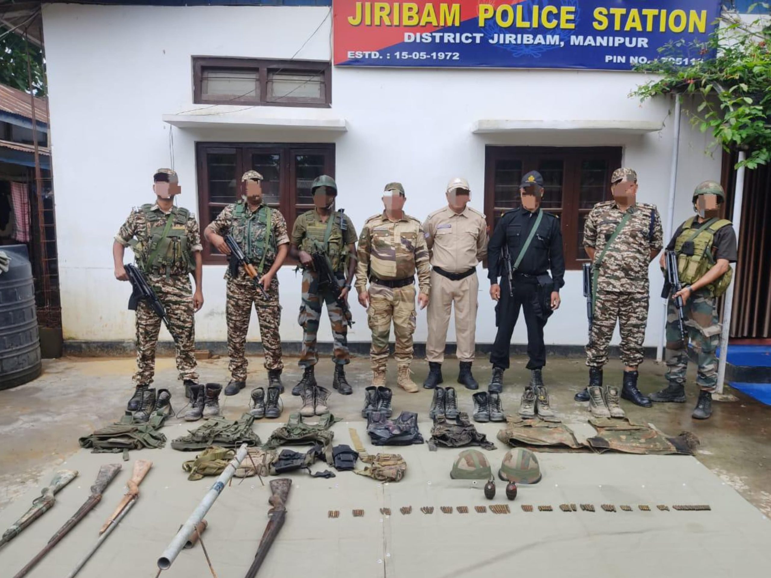 In Jiribam district an intelligence based operation launched by Assam Rifles in coordination with Manipur Police carried out a joint operation in general area of Rashidpur Forest, Jiribam District on 02 Jun 25 and recovered five weapons comprising theee single-barrel rifles, one double-barrel rifle, one improvised mortar (pompi), grenades, ammunition and war-like stores.