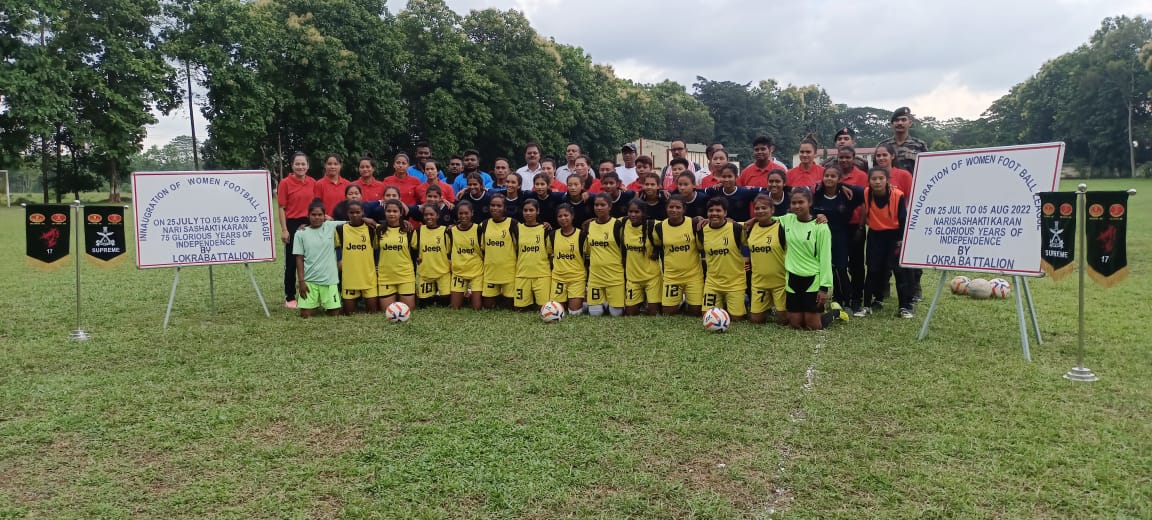Lokra Battalion of Assam Rifles under the aegis of HQ 21 Sector and Inspector General Assam Rifles (East) in collaboration with Tezpur District Sports Association inaugurated a women football league to mark the celebration of 75 years of Independence and to promote ‘Mahila Yuva Sashaktikaran’ initiative pioneered by Lokra Battalion of Assam Rifles on 25th July 2022.The event will be conducted from 25th Jul to 05 Aug 22. During the league a total of 10 matches will be played.