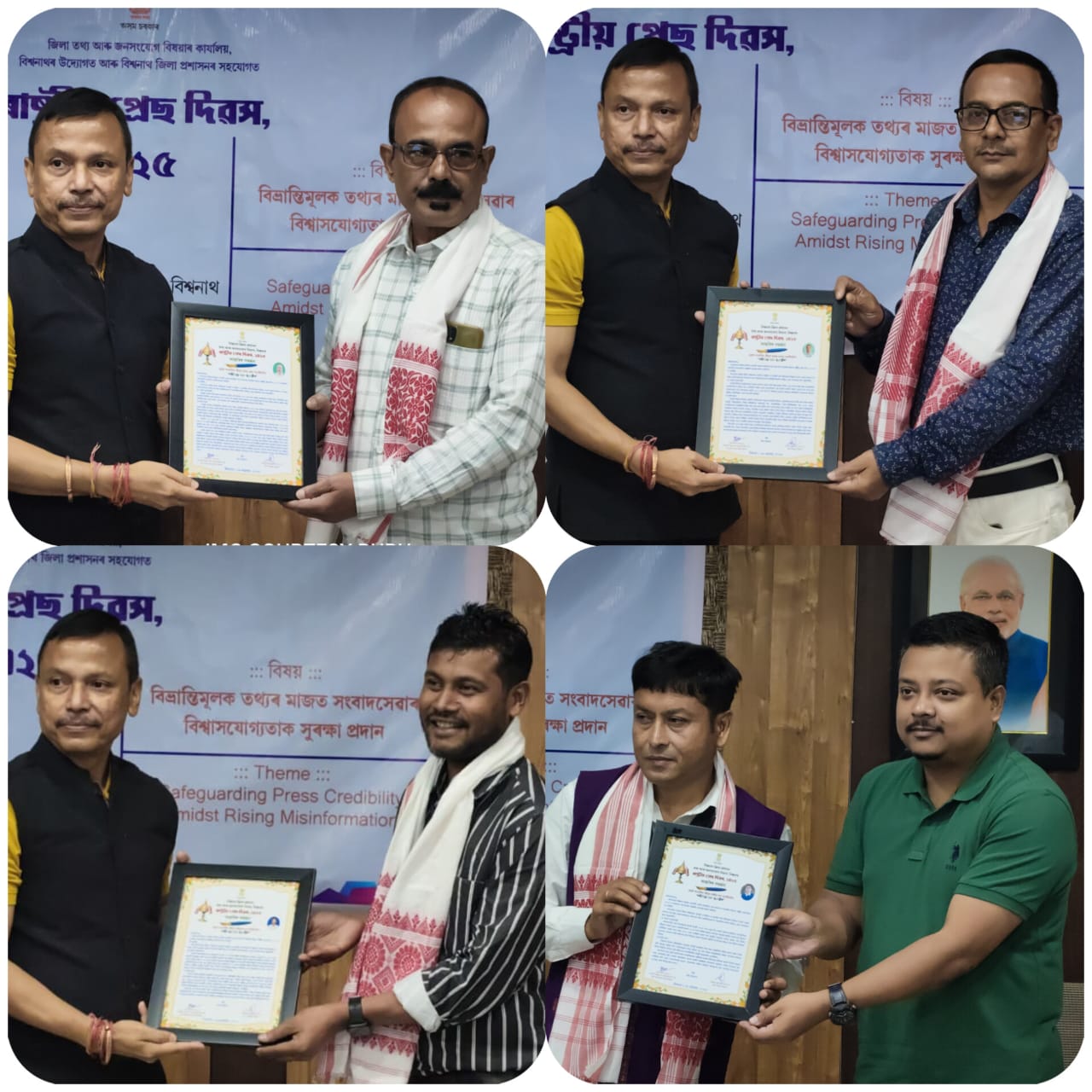 বিশ্বনাথত ৰাষ্ট্ৰীয় প্ৰেছ দিৱস উদযাপনঃ চাৰি গৰাকী সাংবাদিকক সম্বৰ্দ্ধনা
