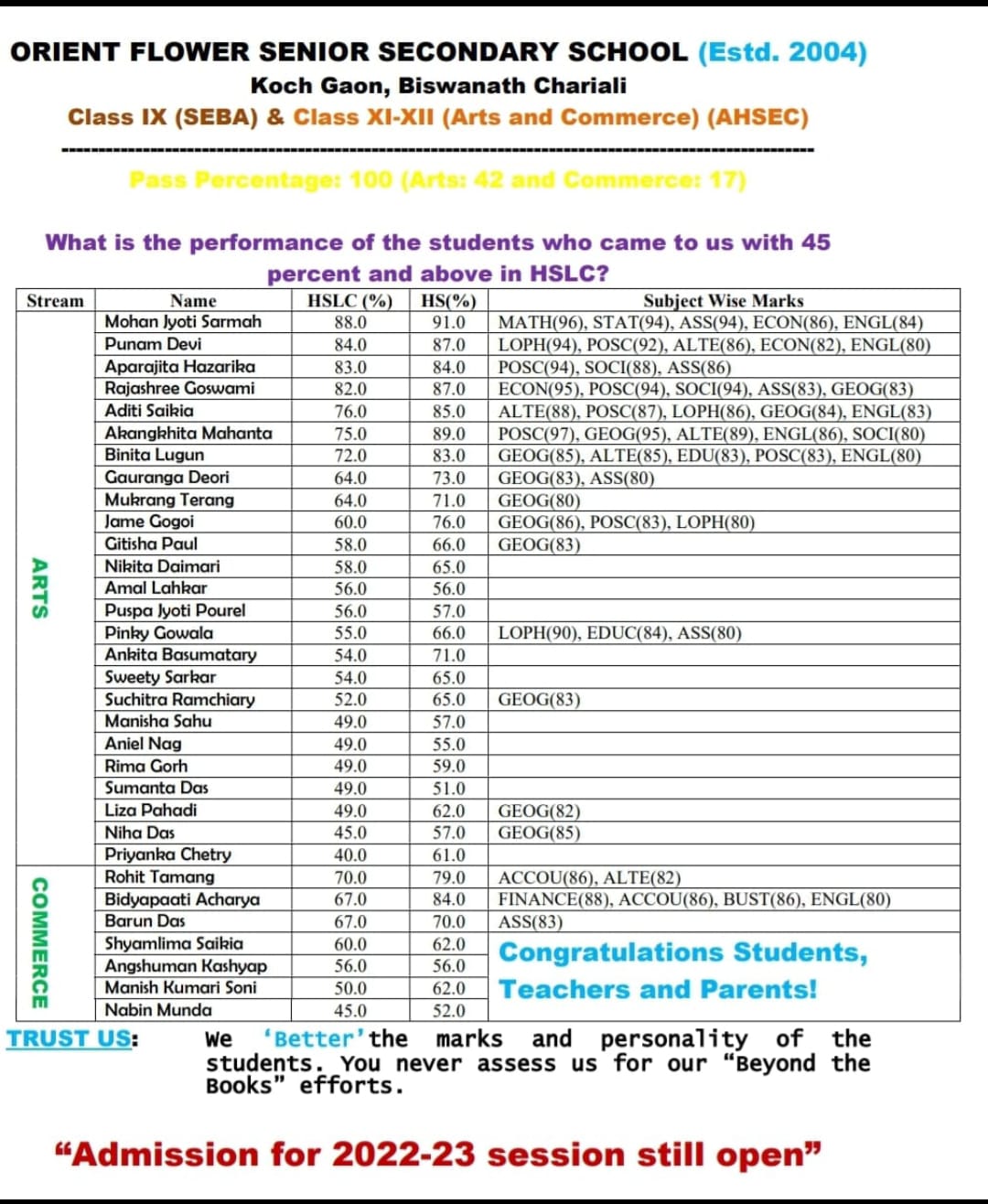 এশ শতাংশ উত্তীৰ্ণৰে  অৰিয়েন্ট ফ্লাৱাৰ চিনিয়ৰ চেকেণ্ডৰী স্কুল ::