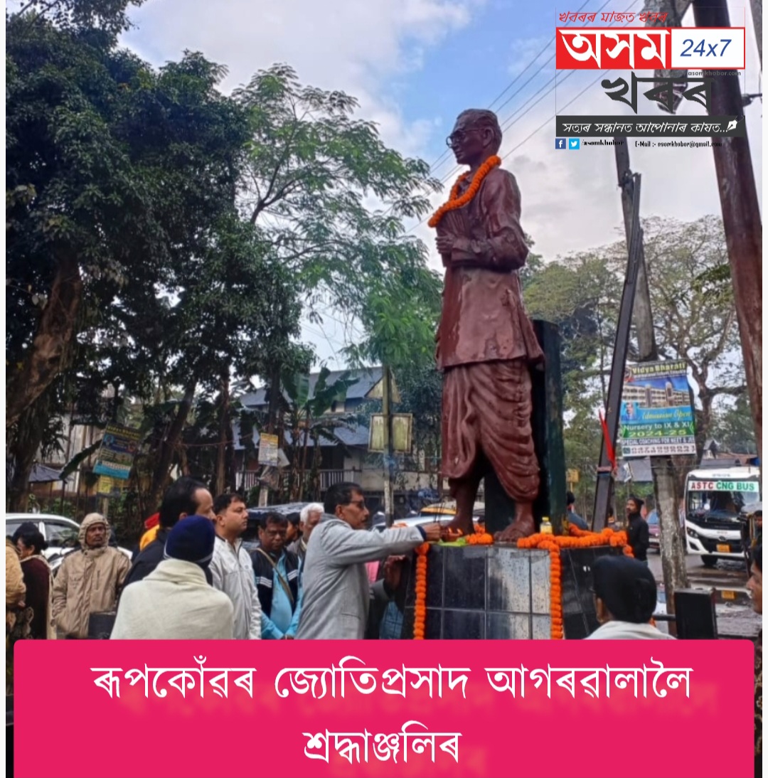 ডুমডুমা ১৭ জানুৱাৰী ঃ ডুমডুমা শতদল শাখা সাহিত্য সভাই ডুমডুমা মাৰোৱাৰী সন্মিলন , ডুমডুমা মাৰোৱাৰী যুৱ মঞ্চ, মহাৰাজা অগ্ৰসেন সেৱা সমিতিৰ সহযোগত ইয়াৰ জ্যোতিপ্ৰসাদৰ প্ৰতিমূৰ্তি স্থলীত শিল্পীগৰাকীলৈ শ্ৰদ্ধাঞ্জলি জ্ঞাপন কৰে। জ্যোতিপ্ৰসাদৰ প্ৰতিমূৰ্তিত মাল্যাৰ্পন কৰাৰ পিছতেই বন্তি প্ৰজ্বলন কৰে শাখা সাহিত্য সভাৰ সভাপতি বিমলা বৰুৱা , মাৰোৱাৰী যুৱ মঞ্চৰ সভাপতি ৰোহিত আগৰৱালা, মহাৰাজা অগ্ৰসেন সেৱা সমিতিৰ সভাপতি ৰবি গোৱেল, ডুমডুমা নামঘৰ সমিতিৰ সভাপতি অজিত পাঠকে। শ্ৰদ্ধাঞ্জলি অনুস্থানত অংশ গ্ৰহণ কৰে তিনিচুকীয়া জিলা সাহিত্য সভাৰ সভাপতি অৰ্জুন বৰুৱা, ডুমডুমা আঞ্চলিক ছাত্ৰ সন্থাৰ প্ৰতিম নেওগ, ডুমডুমা প্ৰেজ ক্লাবৰ সম্পাদক মনোজ বৰুৱা , মাৰোৱাৰী সন্মিলনৰ সভাপতি মহাবীৰ মোদী , শাখা সাহিত্য সভাৰ কোষাধ্যক্ষ দীনেশ গোয়েল, আজীৱন সভ্য নিত্যানন্দ দাস, গৌতম মেধি, বিকাশৰন্জন দত্ত ,হেমন্ত শ্যাম ৰাজু আগৰৱালা, ৰামধন আগৰৱালা সাংস্কৃতিক কৰ্মী অপূৰ্ব বৰুৱা, ৱাচিফুৰ ৰহমানকে ধৰি বহুসংখ্যক লোক উপস্থিত কৰে। এই অনুষ্ঠানতে ডুমডুমাৰ প্ৰবীণ নাট্য আৰু সাংস্কৃতিক কৰ্মী খগেন দাসক এখনি ফুলাম গামোছা, এটি স্মাৰক আৰু এখনি গ্ৰন্থৰে Purchased সম্বৰ্ধনা জনোৱা হয়। সমগ্ৰ অনুষ্ঠানটিৰ আতধৰে। শাখা সাহিত্য সভাৰ সম্পাদক দেবেন ডেকাই।