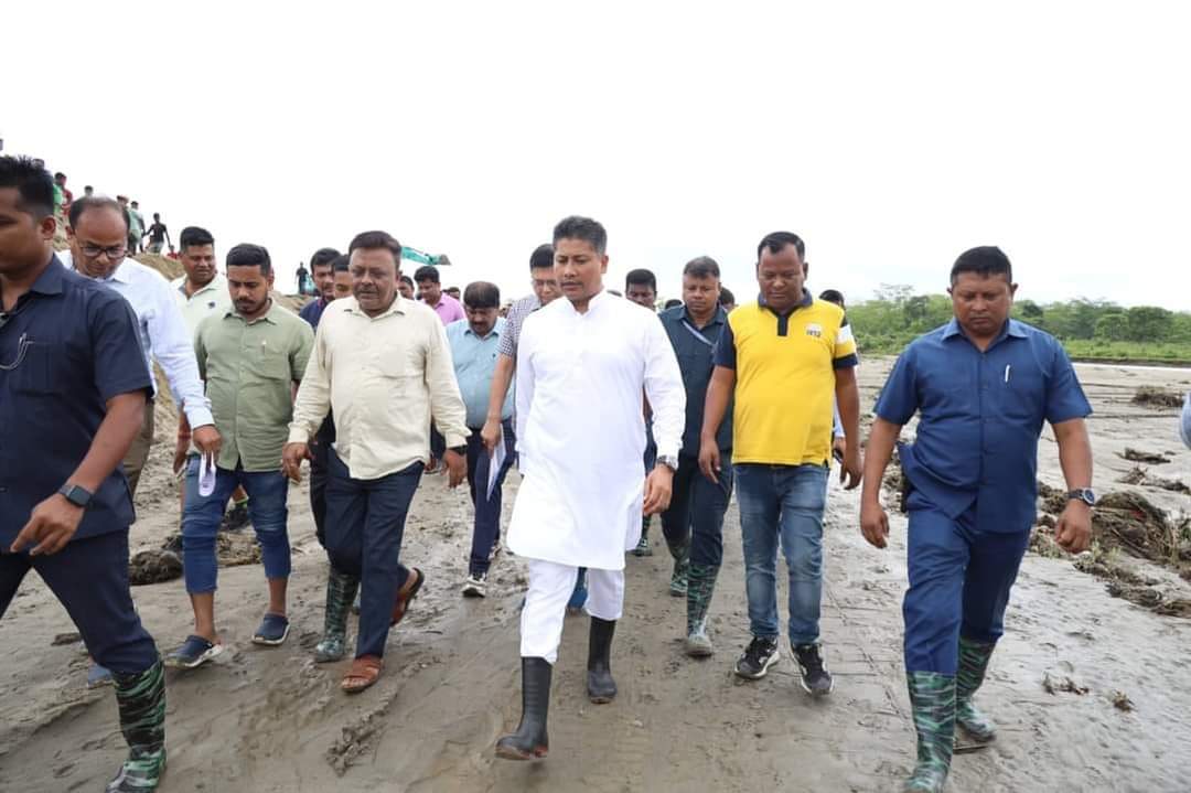 দিনৰ ১২ মান বজাত গহপুৰ সমষ্টিৰ ব্ৰহ্মাজান, গহপুৰ নগৰৰ মাজ মজিয়াৰে বৈ যোৱা চত্ৰং নদীয়ে সৃষ্টি কৰা বানপানী খহনীয়াৰ স্থান সমূহ পৰিদৰ্শন কৰে মন্ত্ৰী পিযুষ হাজৰিকাই।