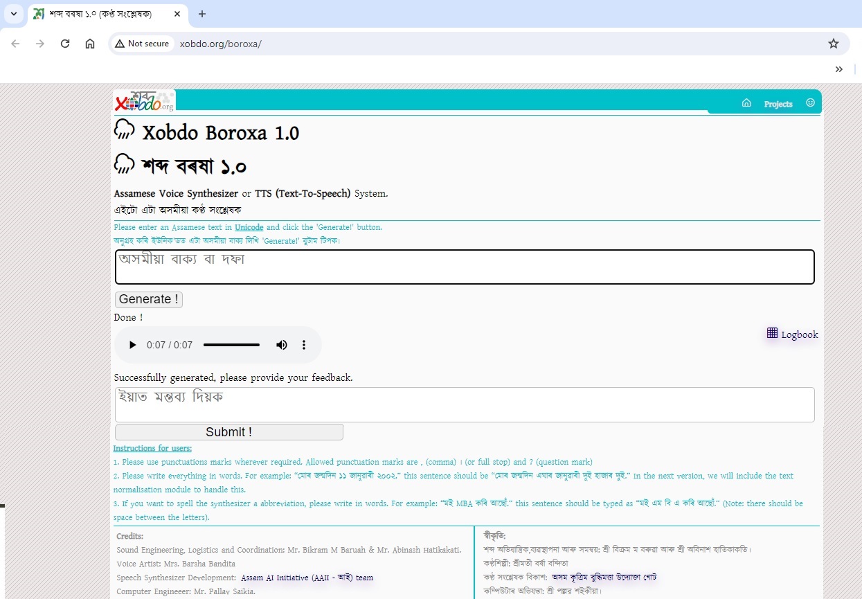 ডিজিটেল মাধ্যমত অসমীয়া ভাষা আৰু সাহিত্যৰ উপলব্ধতা, প্রসাৰ আৰু প্রচাৰৰ বাবে ‘শব্দ বৰষা’ নামৰ অসমীয়া কণ্ঠ সংশ্লেষক প্ৰকল্পৰ লগত জড়িত সকলোকে ধন্যবাদ জনাইছো । অসমৰ জাতি-ধৰ্ম নিৰ্বিশেষে সকলোৱে এই প্রকল্পটোলৈ সহায়ৰ হাত আগবঢ়াবলৈ আহ্বান জনালো।